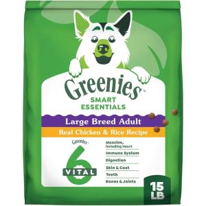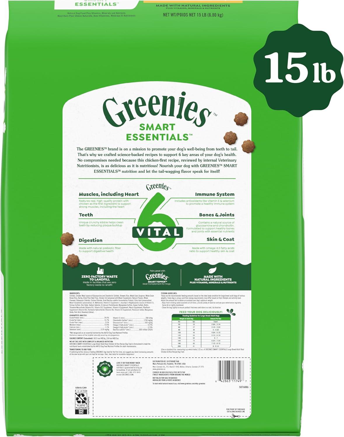 Greenies Smart Essentials Large Breed Adult High Protein Dry Dog Food Real Chicken & Rice Recipe, 30 lb. Bag(Chicken & Rice)