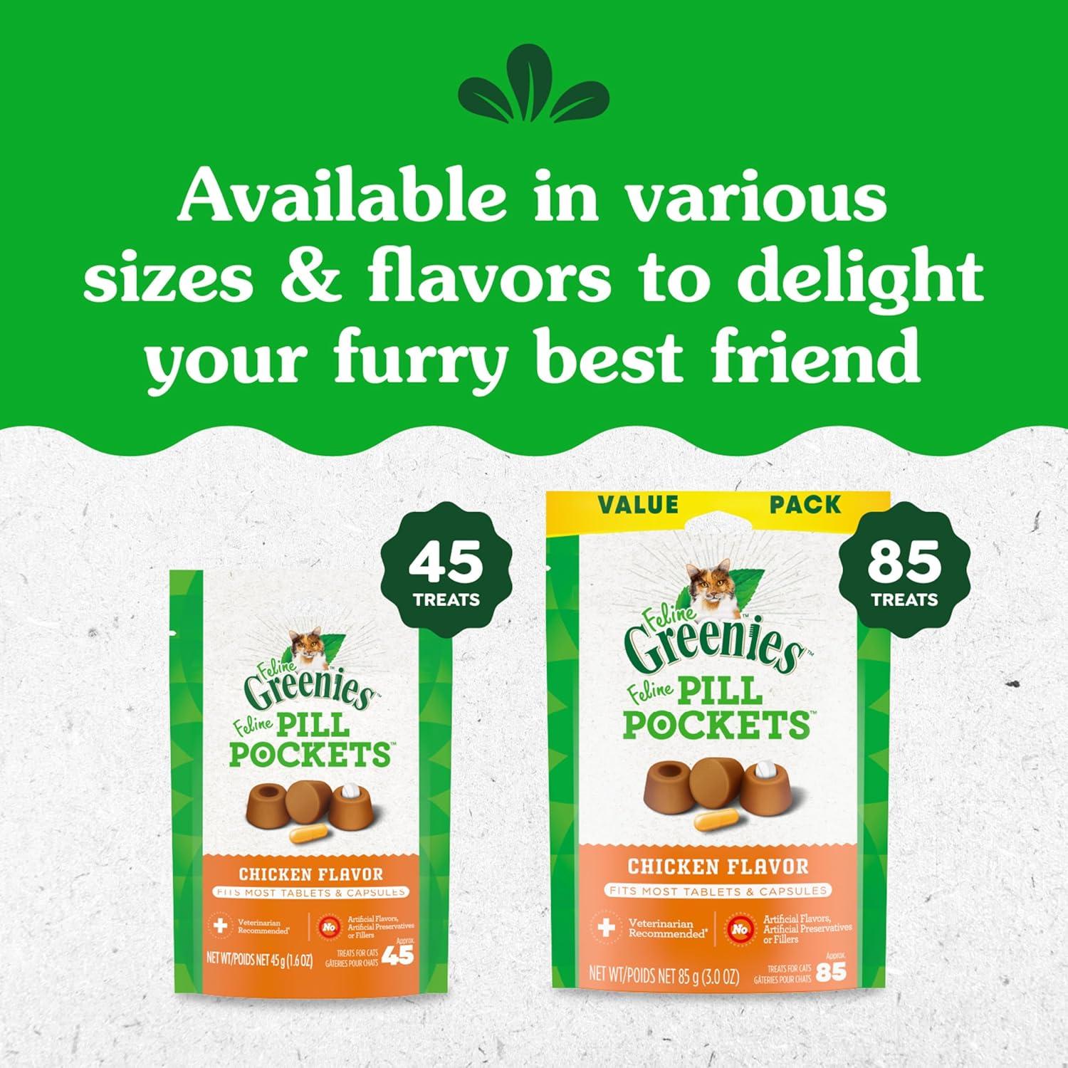 Greenies Feline Pill Pockets for Cats Natural Soft Cat Treats, Chicken Flavor, 3 oz. Pouch (85 Treats)(45 Count (Pack of 1))