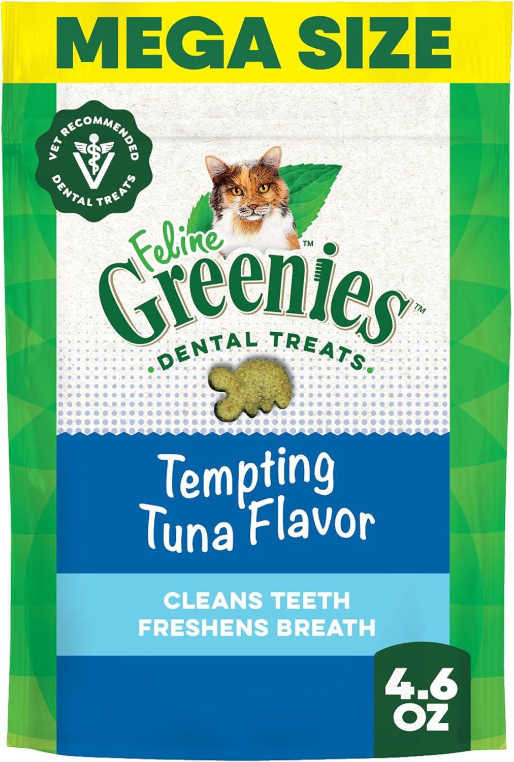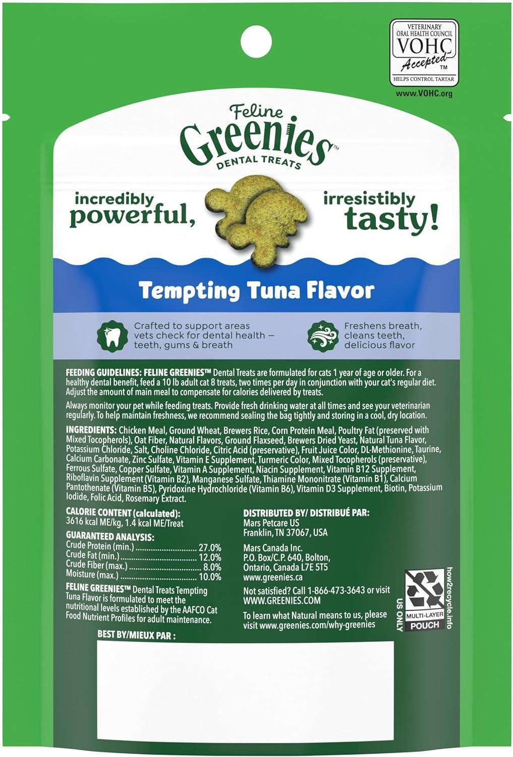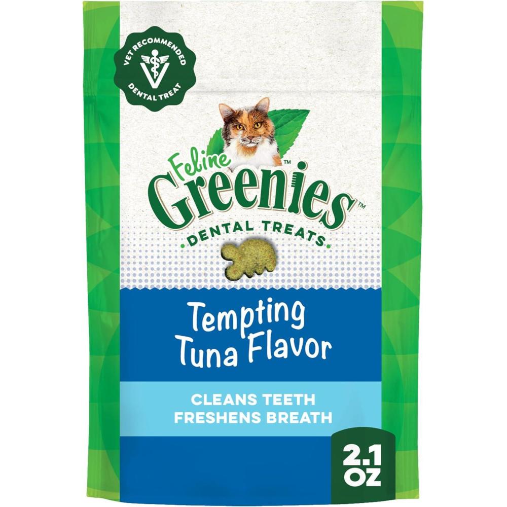 Greenies Feline Veterinarian-Recommended Adult Natural Dental Cat Treats, Tempting Tuna Flavor, 9.75 oz. Tub(Tuna)