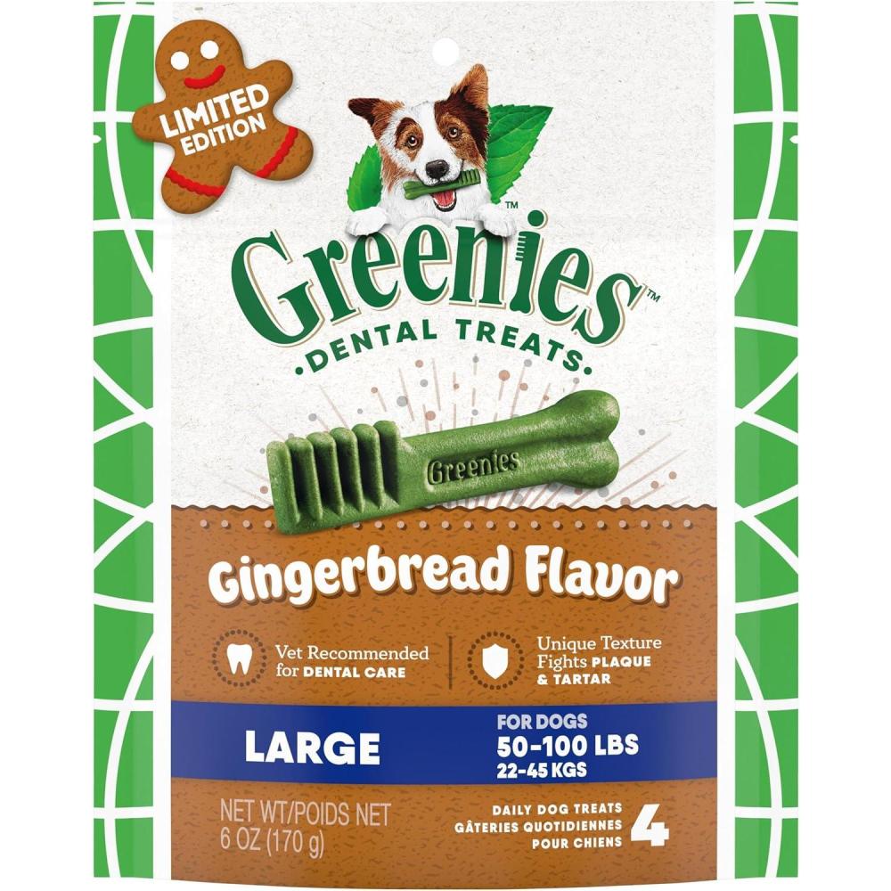 Greenies Gingerbread Flavor Large Size, Veterinarian-Recommended for Dental Care, Dog Treat Chews, Great Holiday Dog Stocking Stuffers, Limited Edition, 6 oz. Pouch (4 Treats)