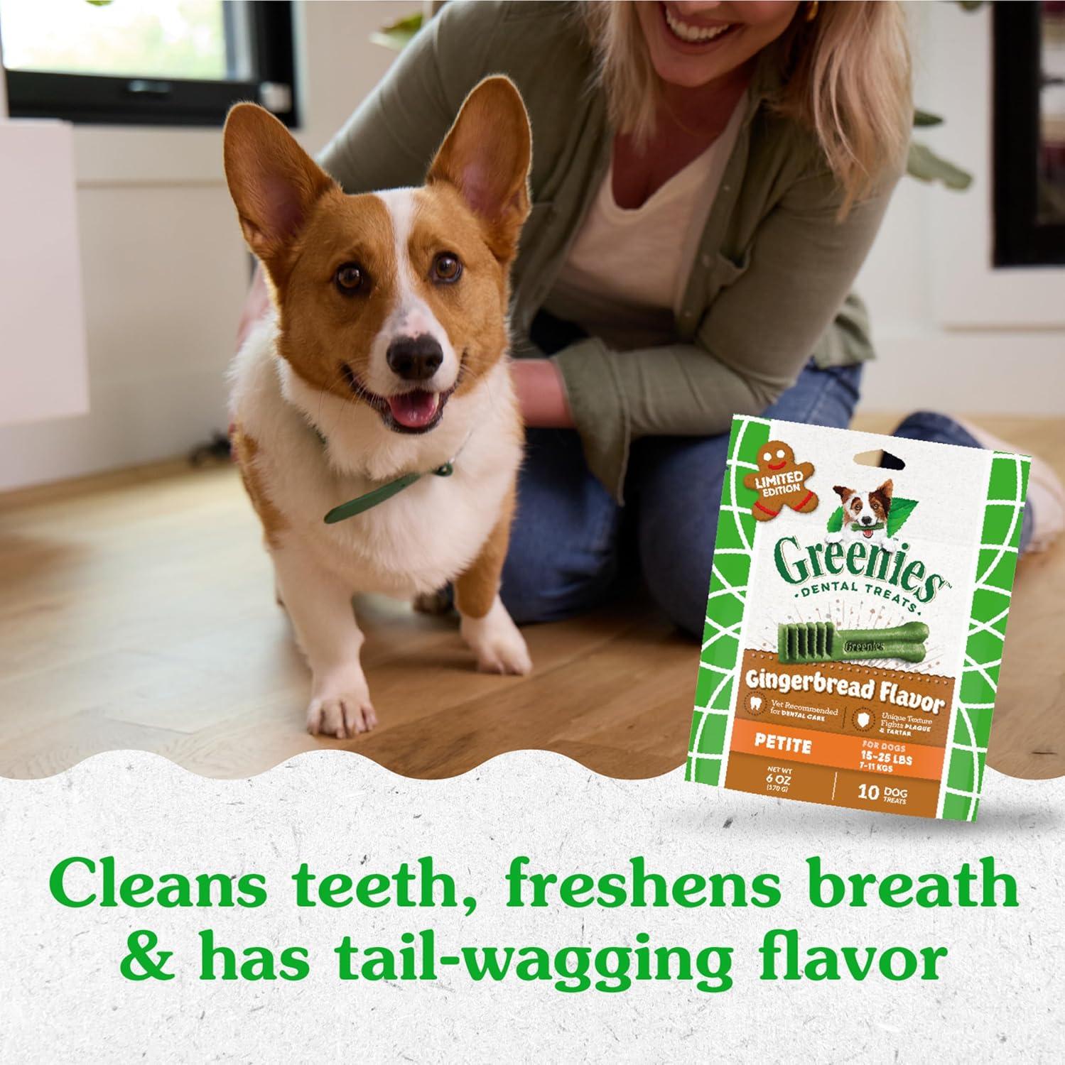 Greenies Gingerbread Flavor Petite Size, Veterinarian-Recommended for Dental Care, Dog Treat Chews, Great Holiday Dog Stocking Stuffers, Limited Edition, 6 oz., Pouch (10 Treats)