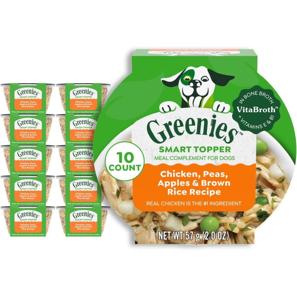 Greenies Smart Topper High Protein Wet Mix-in for Dogs, Beef, Peas & Carrots Recipe in Vitabroth Broth – Bone Broth + Vitamins E & B1, 10 Count(Chicken Peas & Apple)
